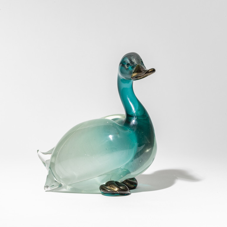 Figura di anatra in vetro 'fumato' verde circa 1938.