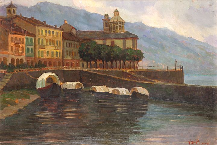 PIANO VITTORIO 1882-1970 "Paesaggio lacustre-Cannobbio" 28x40 olio su...
