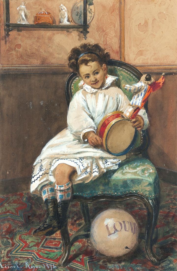 ROYER LIONEL 1852-1926 "Fanciulla sulla sedia" 36x23 acquerello su carta...
