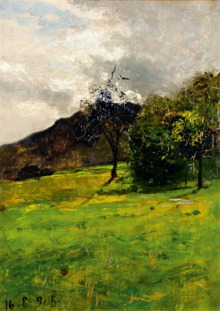 PITTORE DELLA SCUOLA DI DELLEANI "Paesaggio" 16/08/1906 37x27 olio su tavoletta