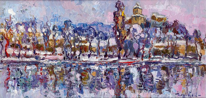 GALLO BEPPE Castagnole Lanze (AT) 1942 "Inverno sul Po" 2009 20x40 olio su...