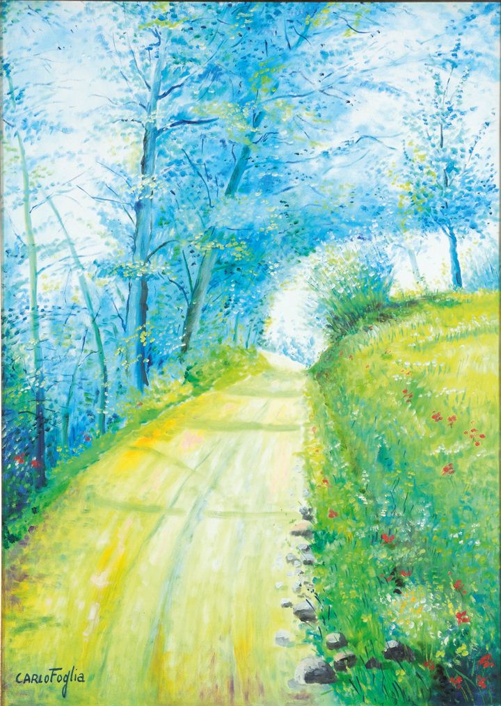 FOGLIA CARLO "Strada in salita" 70x50 olio su tela Opera firmata in basso a...