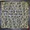 Tecnica mista colore acrilico blue fluo su tela con applicazione di foglie d'argento e banconote americane $1. Con luce nera appaiono scritte con colore fotosensibile blue