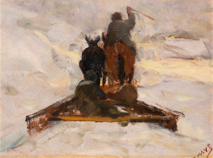 MUS ITALO Chatillon (AO) 1892 - 1967 St.Vincent (AO) "La slitta" 32x42 olio...