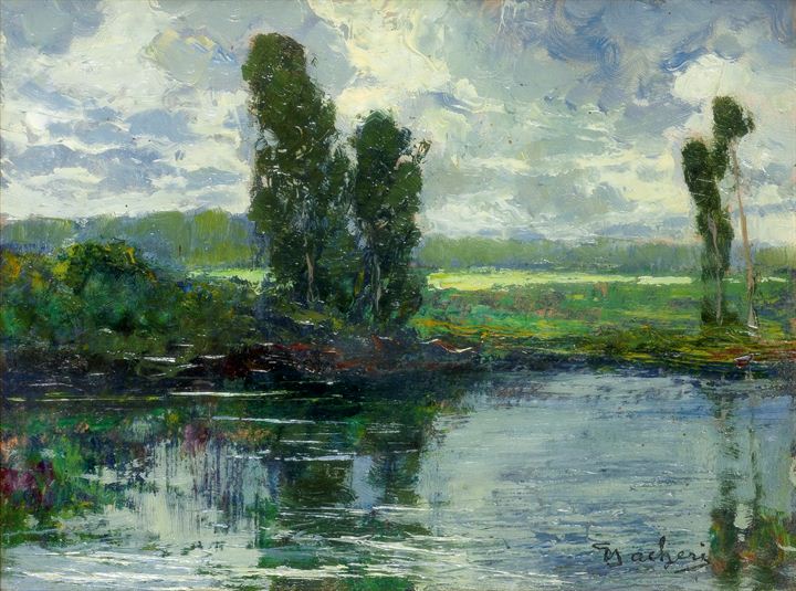 SACHERI GIUSEPPE Genova 1863 - 1950 Pianfei (CN) "Il piccolo fiume" 18x23...
