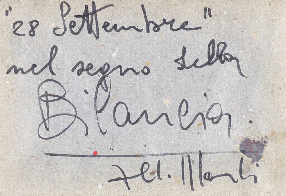" 28 settembre nel segno della Bilancia " e firma sul retro
