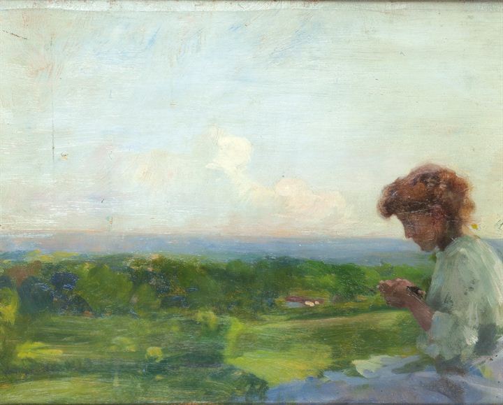 PIZIO ORESTE Torino 1879 - 1938 "Paesaggio con figura femminile" 23x30 olio...