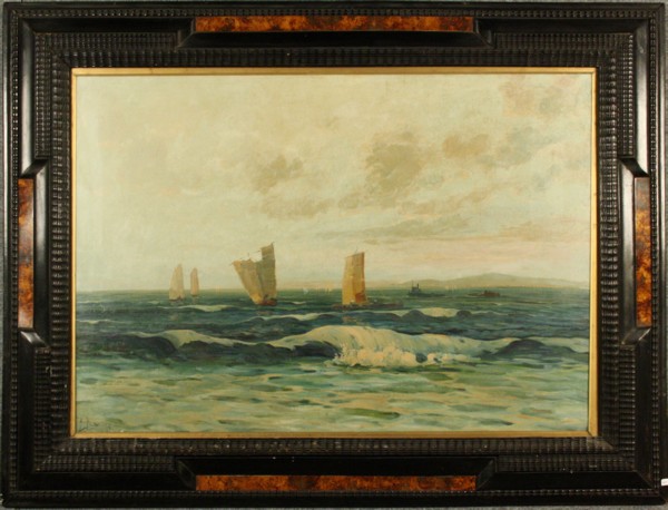 Firmato, datato. PESSINA GIUSEPPE - Milano, 1893-1967. Dipinto olio su tela raff. ''MARINA CON BARCHE''. Firmato in basso a sinistra. In cornice. Mis. Lung. cm. 100 Alt. cm. 70 ca.