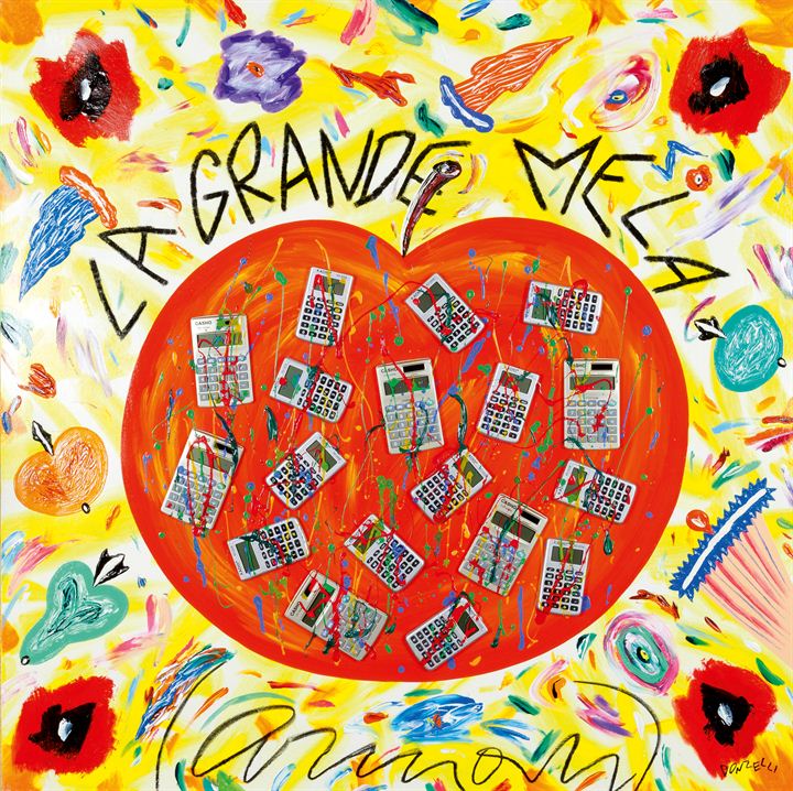 DONZELLI BRUNO Napoli 1941 "La grande mela" 2000 100x100 olio ed applicazioni...