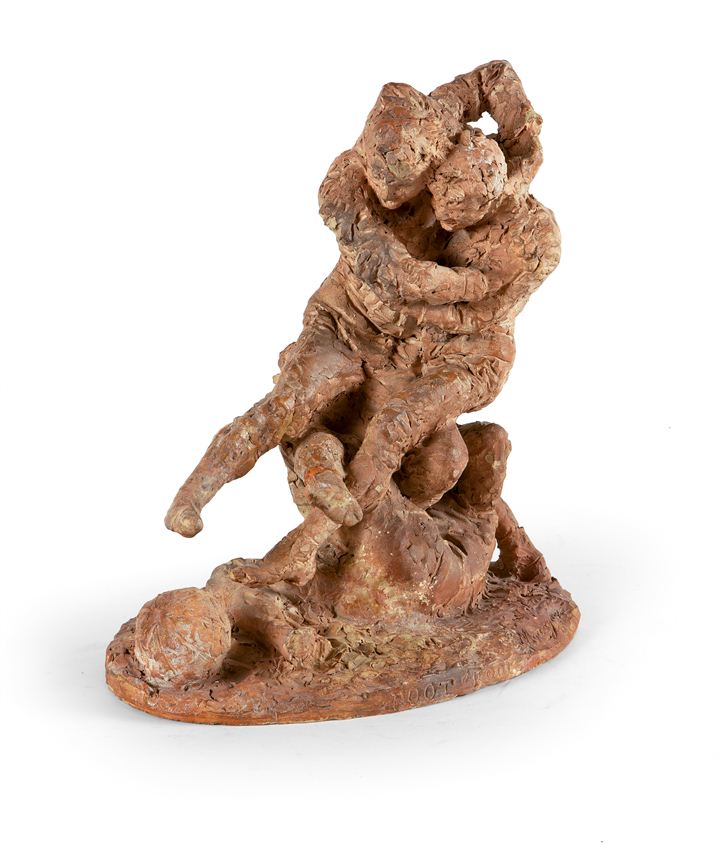 MACCAGNANI EUGENIO 1852-1930 "Giocatori di calcio" H cm 28,5 scultura in...