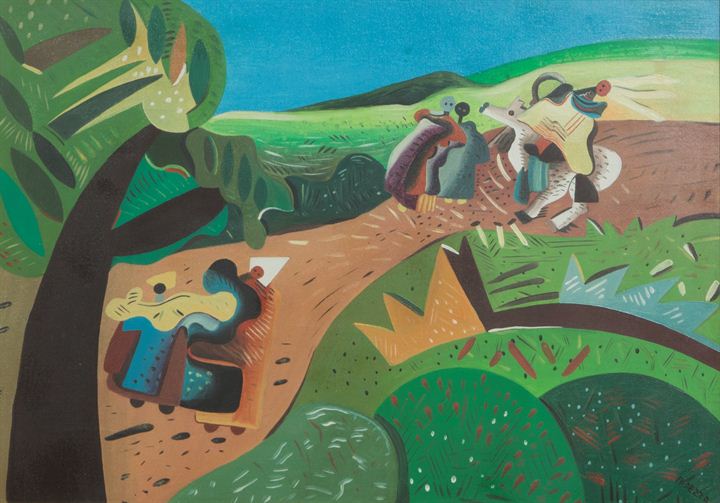 DEZZA ALDO Torino 1937 "Paesaggio fantastico" 50x70 olio su tela Opera...