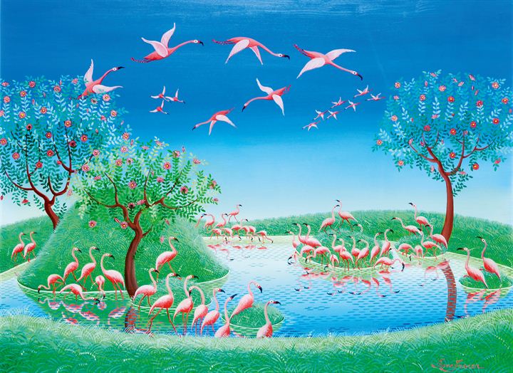 INVREA IRENE Diano d'Alba (CN) 1914 "Stagno con fenicotteri" 60x80 olio su...