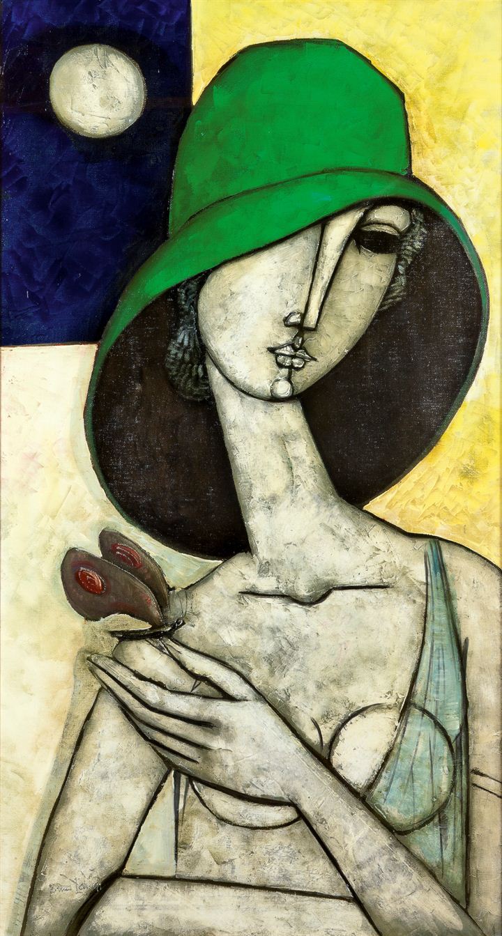 LANDI BRUNO Roma 1941 "La farfalla" 2002 90x50 olio su tela Opera firmata ed...