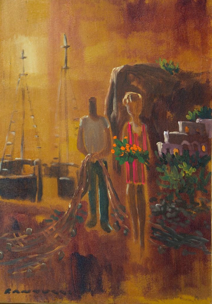 FANTUZZI ELIANO 1909-1987 "Passeggiata al porto" 70x50 olio su tela Opera...