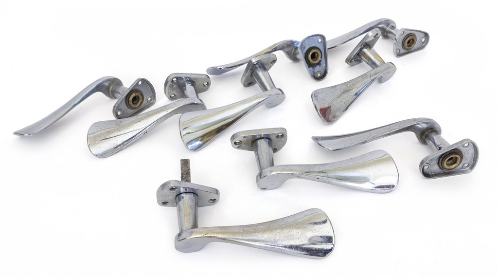 NOVE MANIGLIE, anni '60. <br>Ottone cromato.