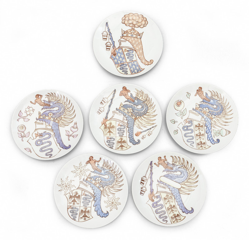 Sei piatti della serie 'iconografia degli stemmi Viscontei' per Alfa Romeo, 1970.