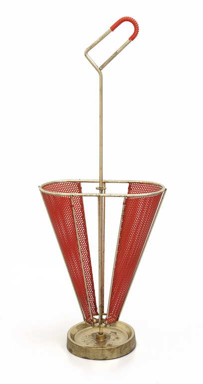 UN PORTAOMBRELLI, anni '50. <br>Acciaio ottonato,