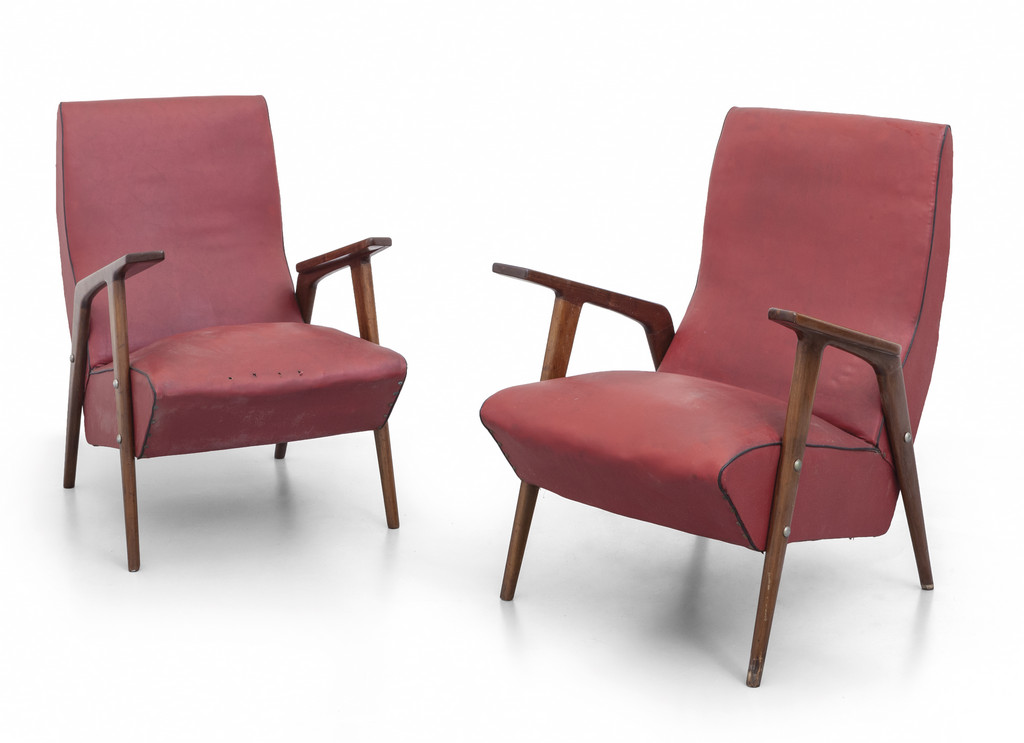 DUE POLTRONE, anni '50. <br>Legno di faggio tinto