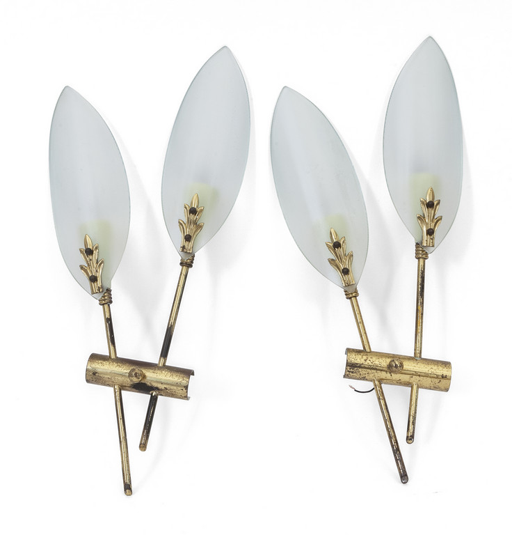 DUE LAMPADE DA PARETE, anni '50. <br>Ottone,