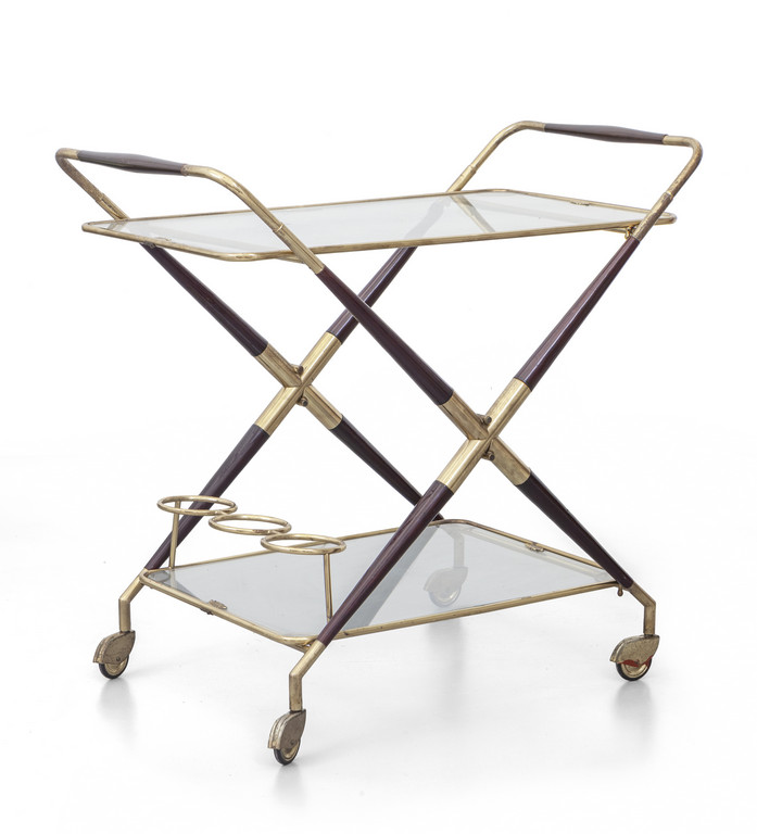 UN CARRELLO, anni '50<br>Ottone, legno tornito