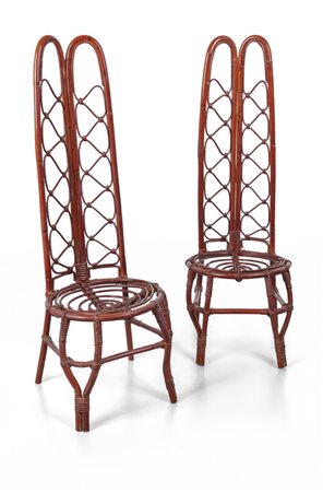DUE SEDIE, anni '60. <br>Bambù, giunco e canna