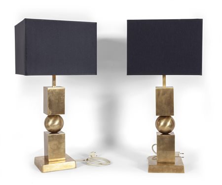 DUE LAMPADE DA TAVOLO, anni '70. <br>Ottone,