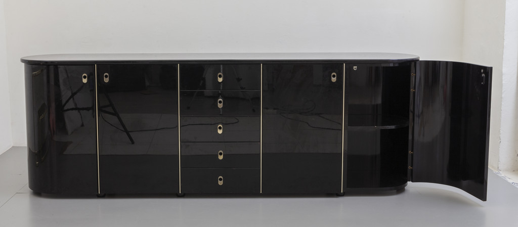 UNA CREDENZA, anni '70. <br>Legno laccato.