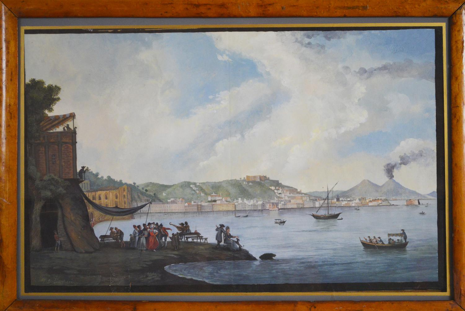 Scuola Napoletana del XIX secolo VEDUTA DI NAPOLI CON IL VESUVIO gouache su...
