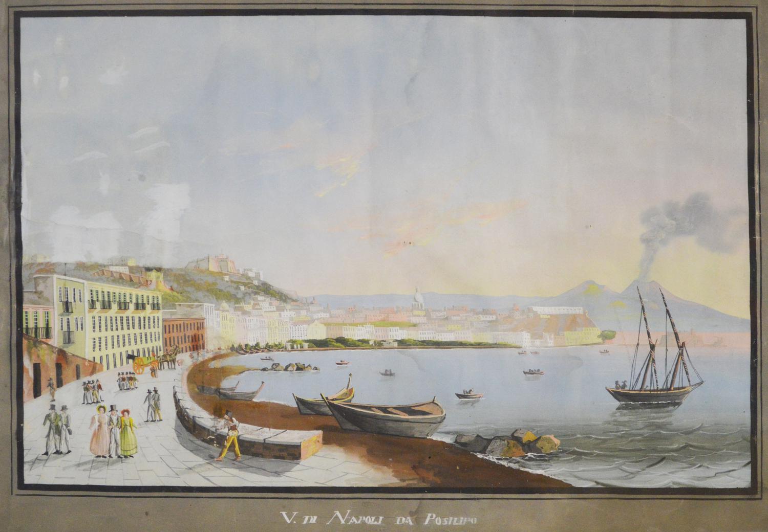 Scuola Napoletana del XIX secolo VEDUTA DI NAPOLI A POSILLIPO gouache e...