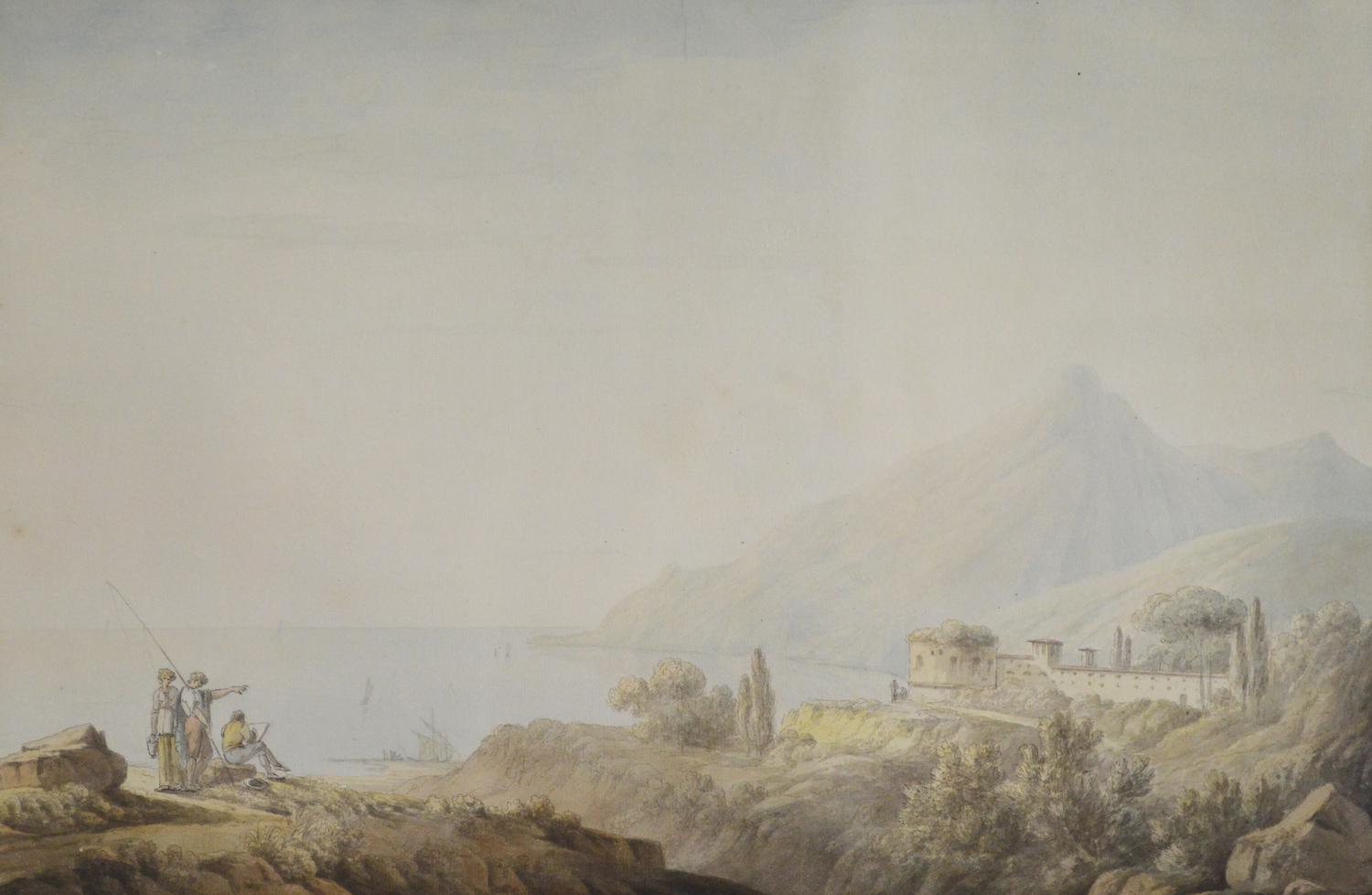 Robert Freebairn VEDUTA VERESO PAESTUM gouache su carta, cm 40x60 sul retro:...