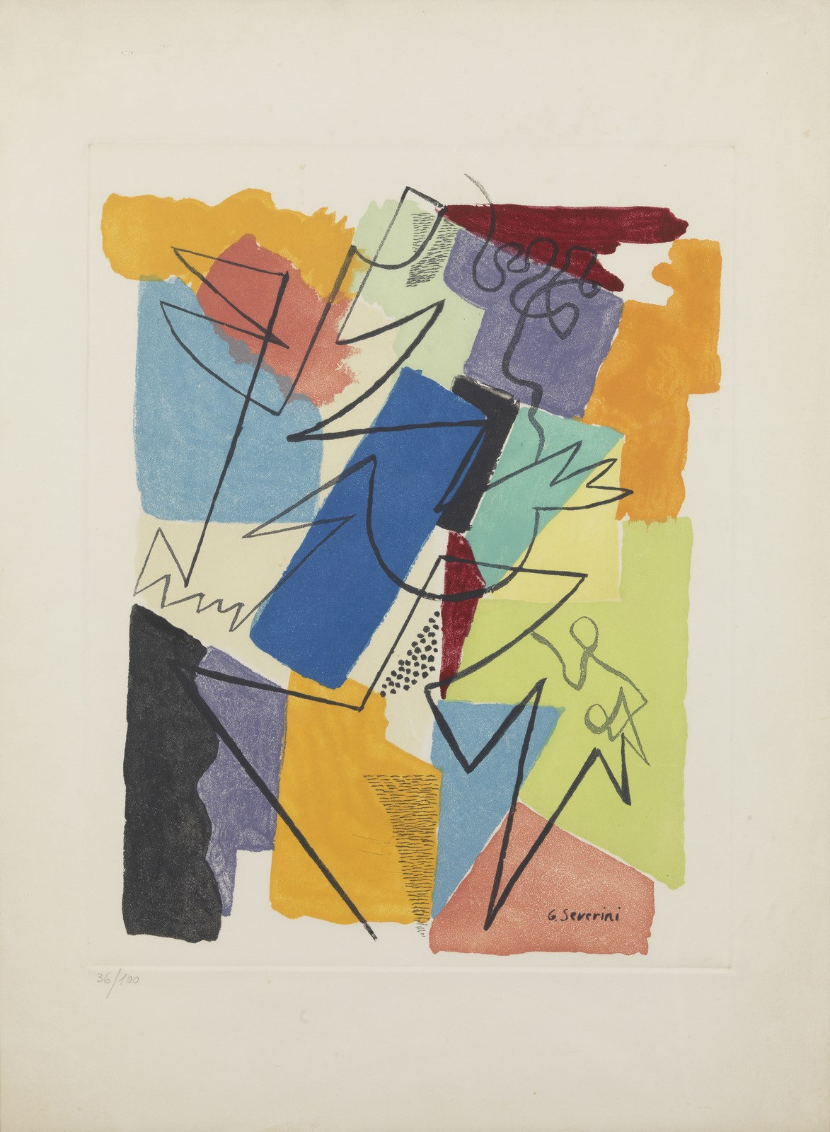 SEVERINI GINO (1883 - 1966) Senza titolo. Acquaforte e acquatinta. Cm 55,00 x 74,00. 36/100. Tiratura in basso a sinistra a matita. Firma in lastra in basso a destra. Dimensione lastra: 54x41 cm. Cornice presente