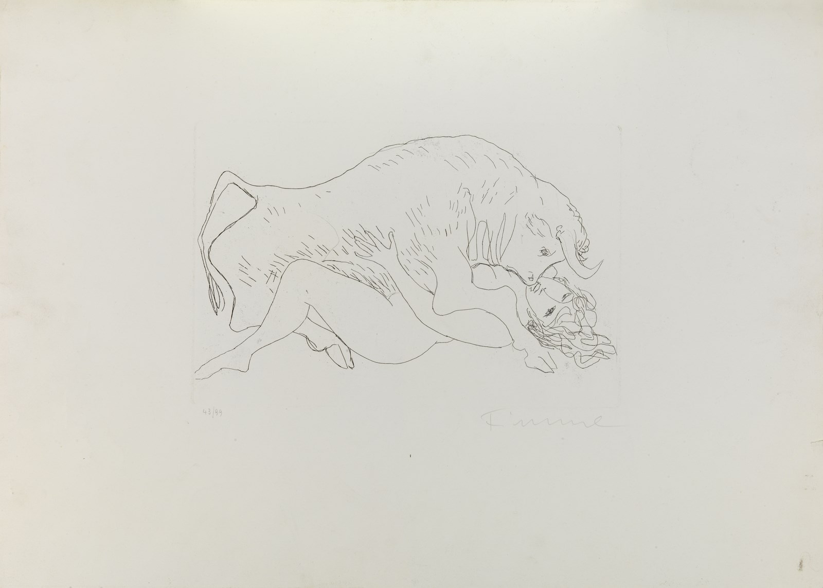 FIUME SALVATORE (1915 - 1997) Senza titolo. Acquaforte. Cm 70,00 x 50,00. 43/99. Tiratura e firma in basso a matita. Dimensione lastra: 24x36 cm.