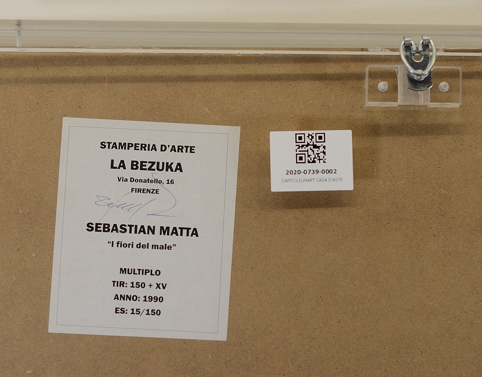 MATTA ROBERTO SEBASTIAN ANTONIO (1911 - 2002) I Fiori del Male. 1990. Serigrafia su cartone. Cm 71,50 x 71,50. 15/150. Tiratura a matita in basso a sinistra. Provenienza: La Bezuca Stamperia d'Arte, Firenze. Edizione totale: 150 esemplari numerati da 1/150 a 150/150 + 15 esemplari numerati da I/XV a XV/XV. . Cornice presente