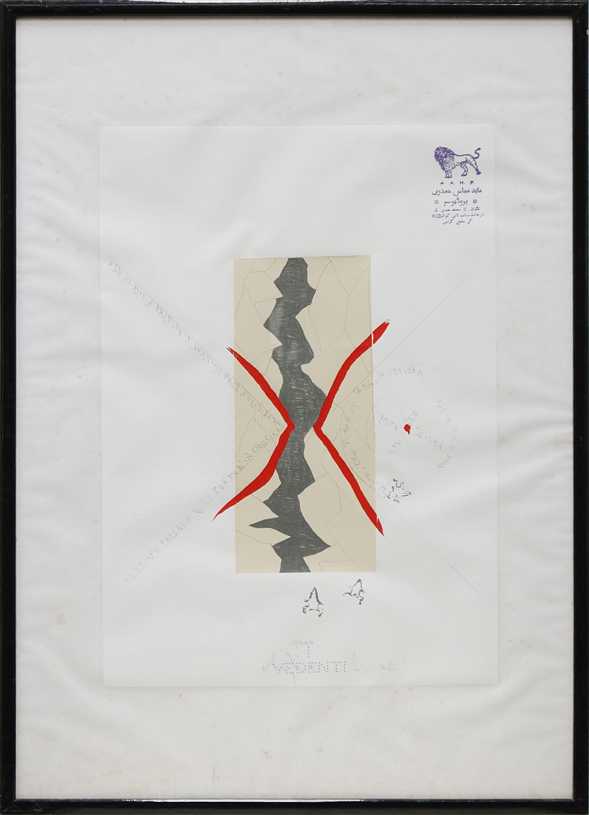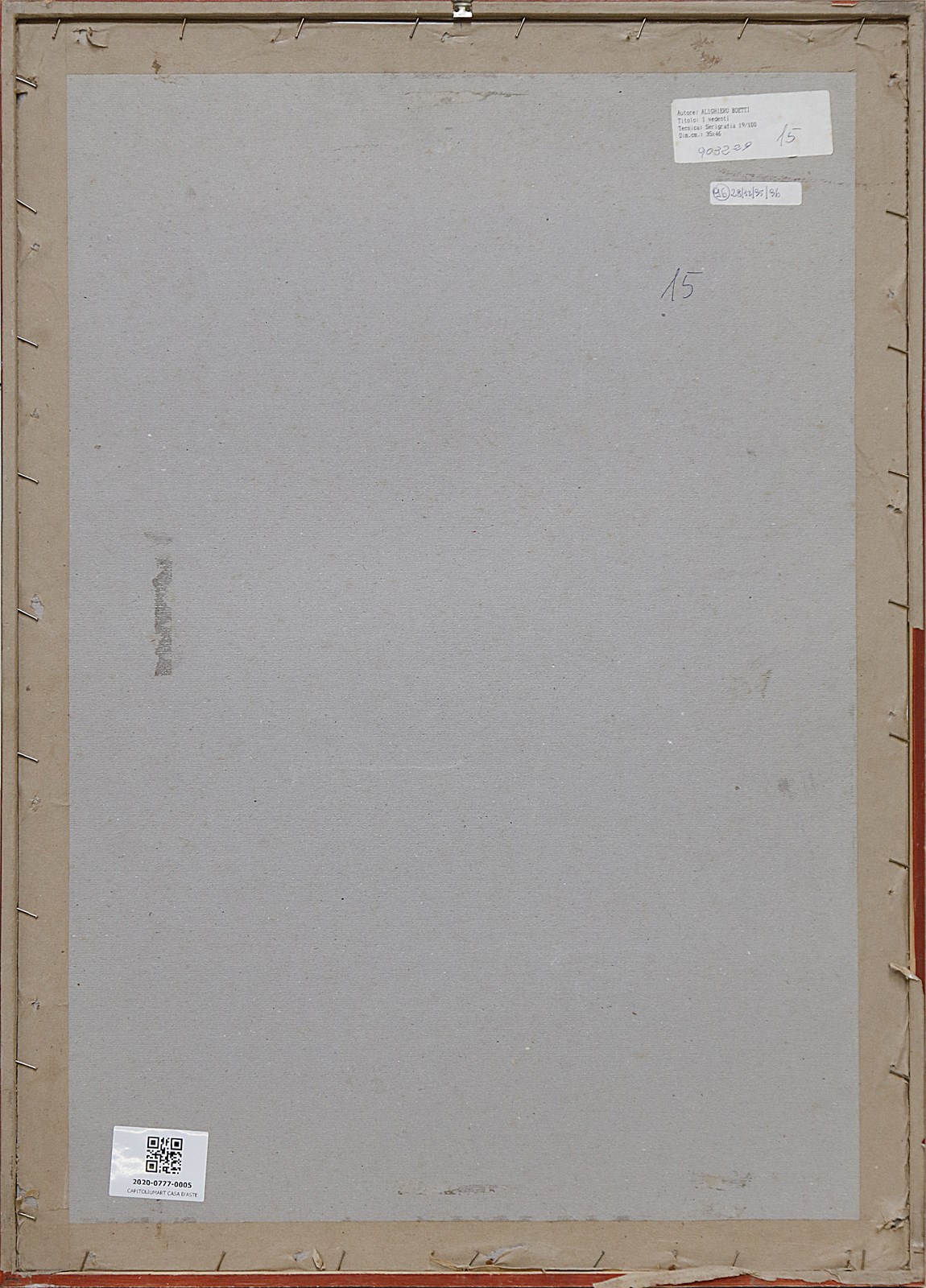 BOETTI ALIGHIERO (1940 - 1994) I Vedenti. Serigrafia su tela. Cm 50,00 x 70,00. 19/100. Titolo, tiratura e firma in basso al centro. Dimensione lastra: 50x35 cm. Difetti. Cornice presente