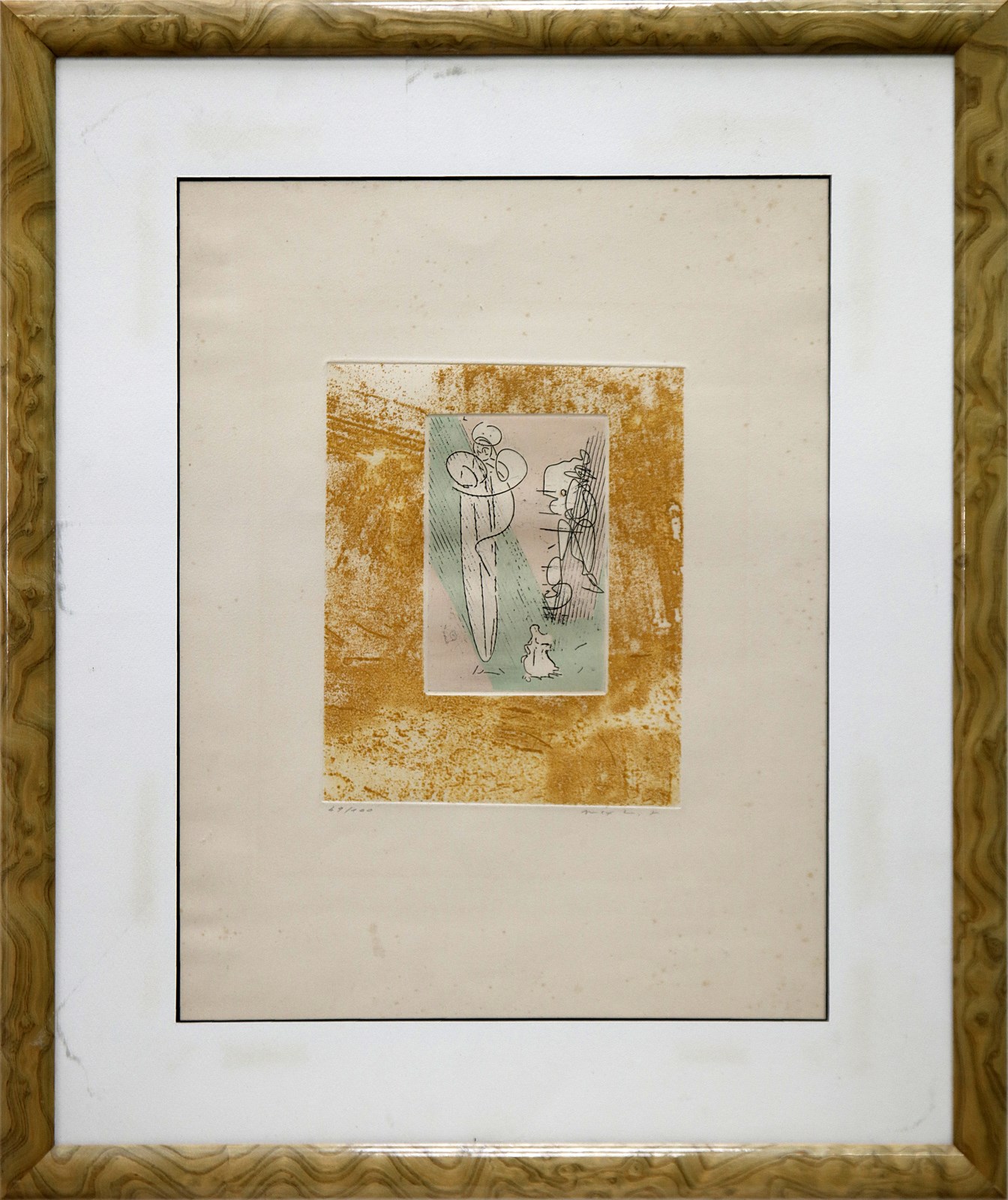 ERNST MAX (1891 - 1976) Composizione. Acquaforte e acquatinta. Cm 38,00 x 53,50. 49/100. Tiratura e firma in basso a matita. Dimensione lastra: 24x19.5 cm. Edizione Visat, Parigi. Pubblicazione: H.R. Leppien, Max Ernst Das Graphische Werk, Ed. Schauberg, 1975, pag 152, tav A. Lievi difetti. Cornice presente