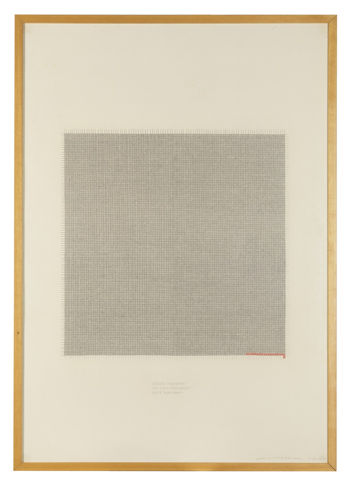 BONFANTI MAURIZIO (n. 1952) Conosci Pontormo? Hai visto Pontormo? Dov'è Pontormo?. Litografia ritoccata a mano. Cm 100,00 x 60,00. 76/77. Titolo in basso al centro. Tiratura e firma a matita in basso a destra. Cornice presente