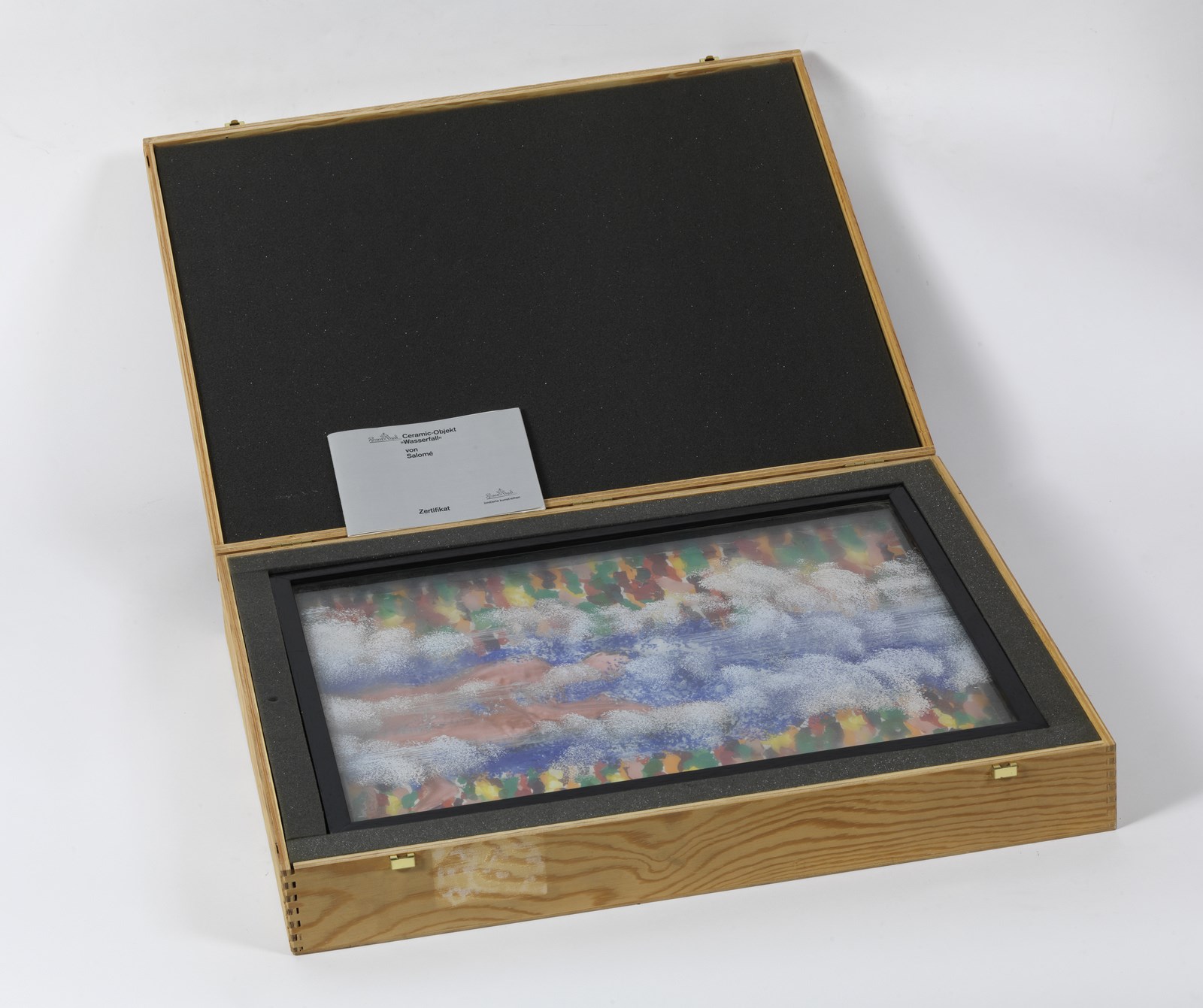 SALOME' (n. 1954) Per Rosenthal. Wasserfall. Ceramica. Cm 35,00 x 44,50. 157/299. Firma in basso a destra. Al retro cartiglio con tiratura, firma a stampa e titolo. Presente confezione originale. Certificato di garanzia della Rosentahl.