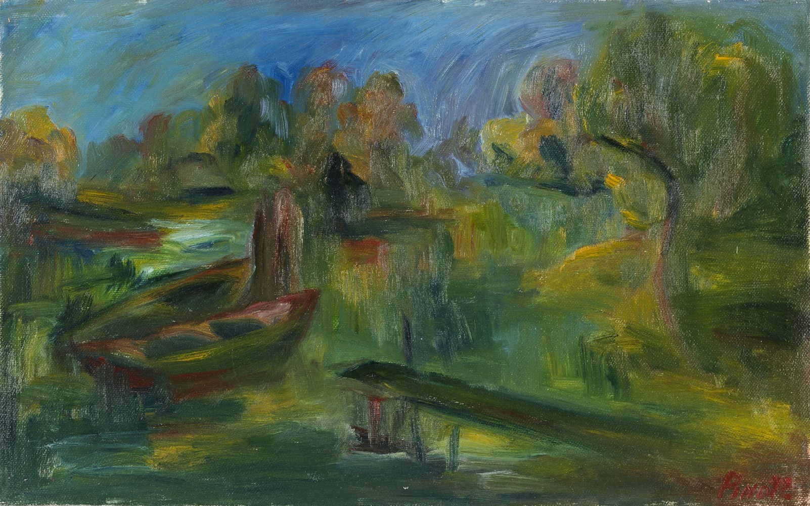 PONTI PINO (1905 - 1999) Senza titolo. Tecnica mista su tela. Cm 40,00 x 25,00. Firma in basso a destra e al retro. Cornice presente