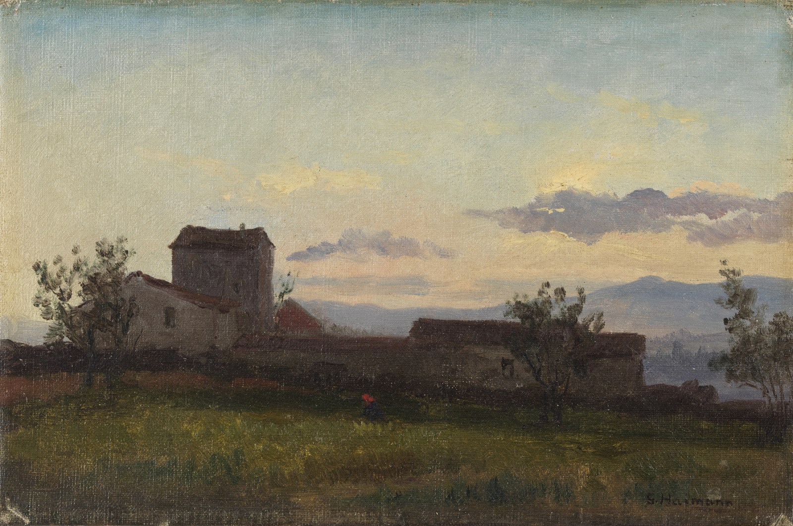 HAIMANN GIUSEPPE (1828 - 1883) - Casolare al tramonto.