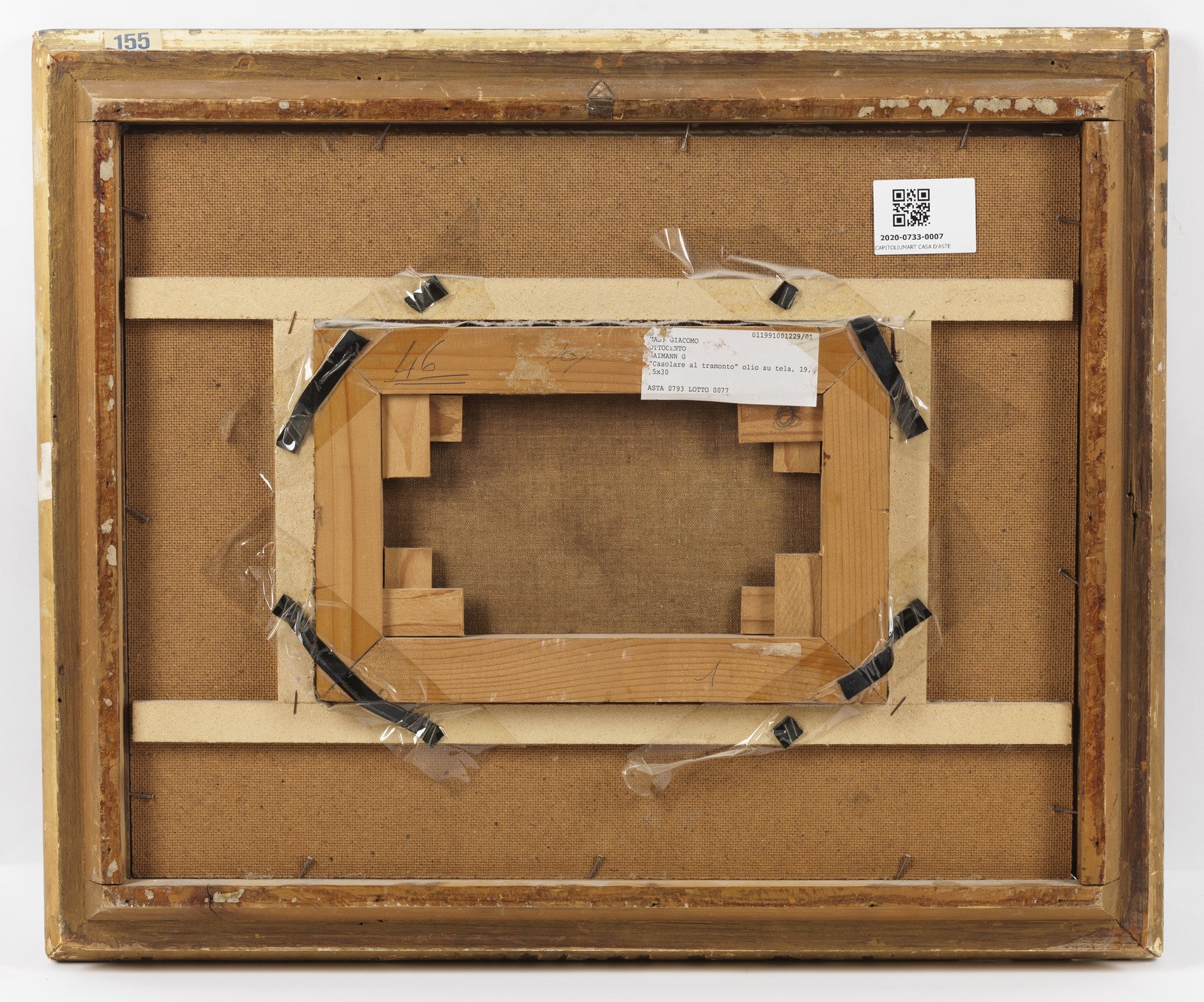 HAIMANN GIUSEPPE (1828 - 1883) Casolare al tramonto. Olio su tela . Cm 30,00 x 20,00. Firma in basso a destra. Lievi difetti. Cornice presente