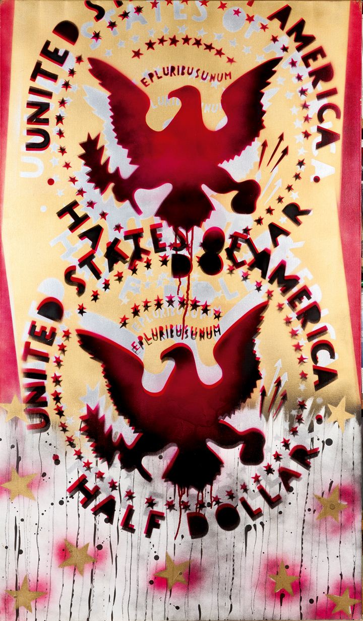 ANGELI FRANCO Roma 1935 - 1988 "Half dollar"anni '80 120x70 smalti su tela...