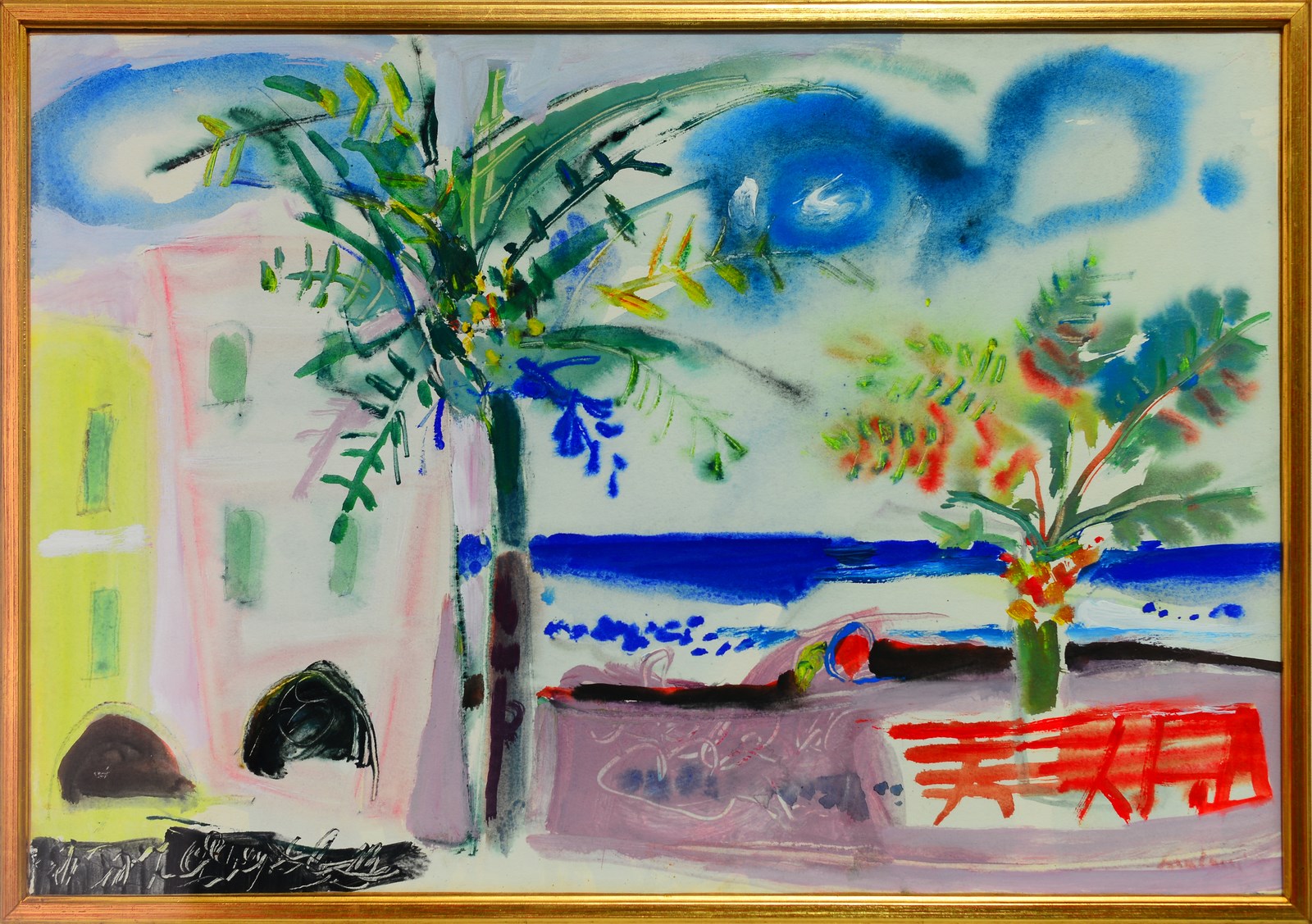 PAULUCCI ENRICO (1901 - 1999) Marina. Gouaches. Cm 48,00 x 33,00. Firma in basso a destra. Opera archiviata presso l'Archivio Paulucci come da documentazione fotografica allegata all'opera riportante il relativo numero d'inventario. Cornice presente