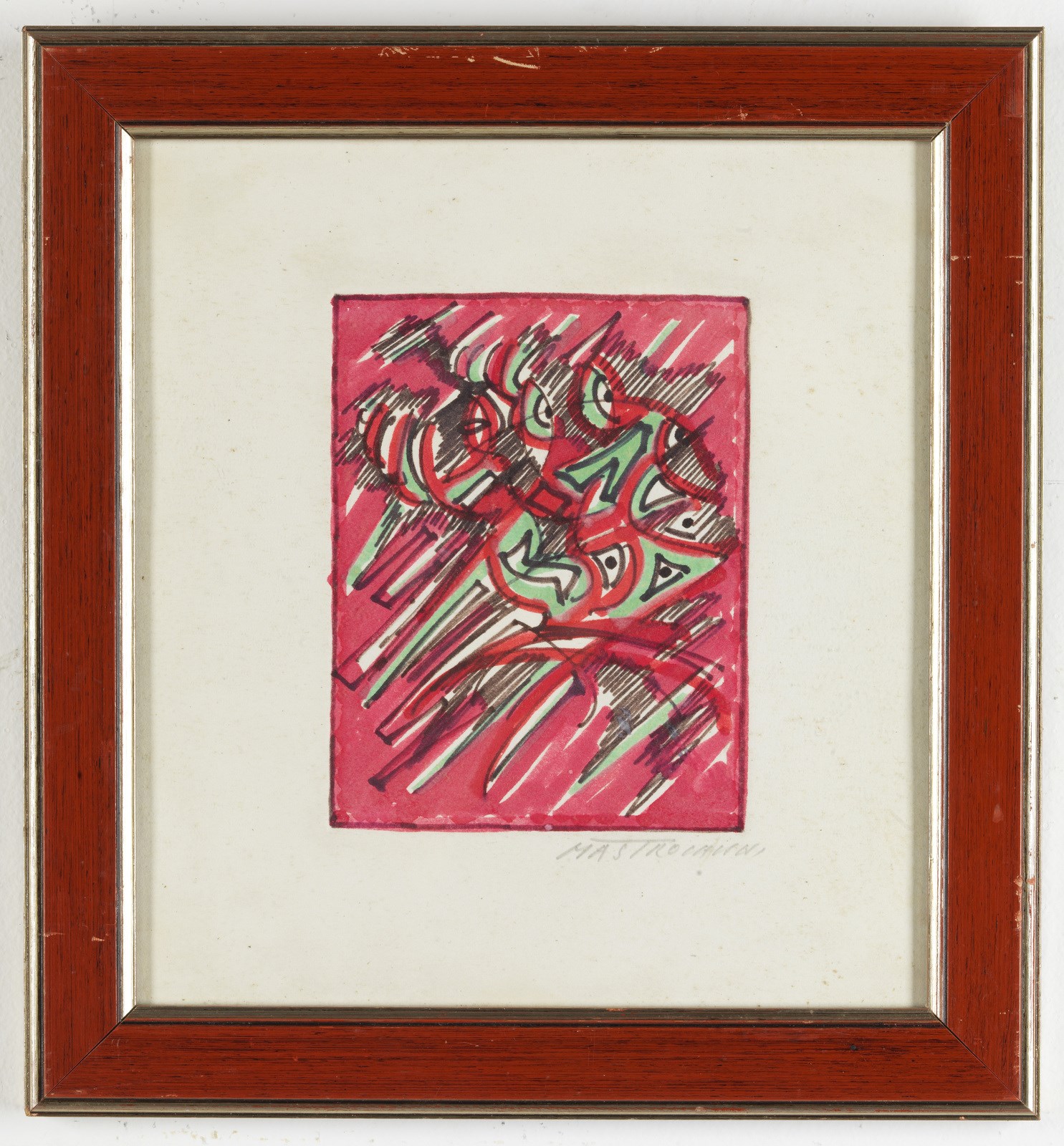 MASTROIANNI UMBERTO (1910 - 1998) Senza titolo. Tecnica mista su carta. Cm 23,00 x 26,00. Firma in basso a destra. Difetti. Cornice presente