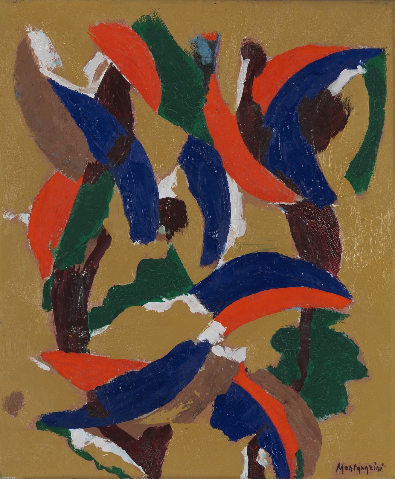 MONTANARINI LUIGI (1906 - 1998) Variazioni. Olio su tela . Cm 50,00 x 60,00. Firma in basso a destra. Difetti. Opera archiviata presso l' Associazione Artistica Archivio Luigi Montanarini, Forte dei Marmi come da documentazione fotografica allegata all'opera riportante il relativo numero d'inventario. 1971/1972