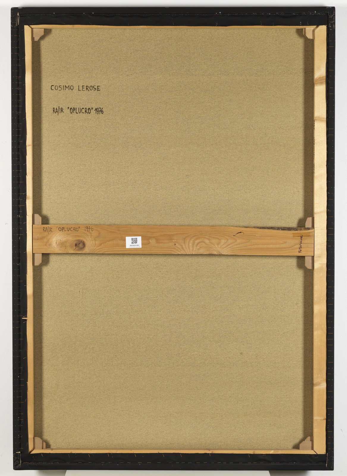 LEROSE COSIMO (n. 1939) RA/IR Oplucro. 1976. Tecnica mista su tela. Cm 110,00 x 160,00. Al retro titolo, firma e anno.