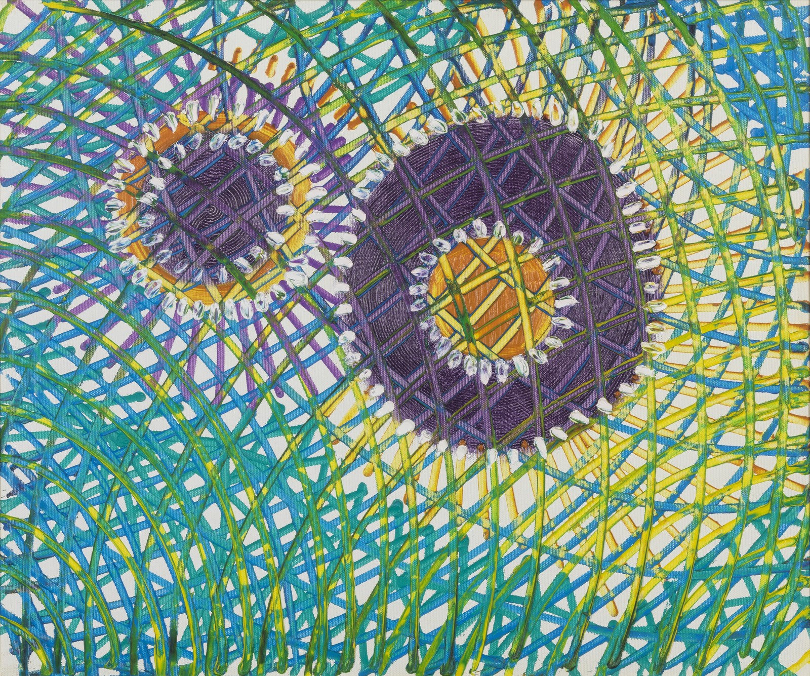 LOPES BERTINA (1924 - 2012) Senza titolo. 1976. Tecnica mista su tela. Cm 60,00 x 50,00. Al retro firma e anno. Esposizioni: Bertina Lopes - Pittrice del Mozambico, Galleria d'arte Contemporanea La Leonessa, Brescia, 29 Gennaio 1977 - 11 Febbraio 1977. Cornice presente