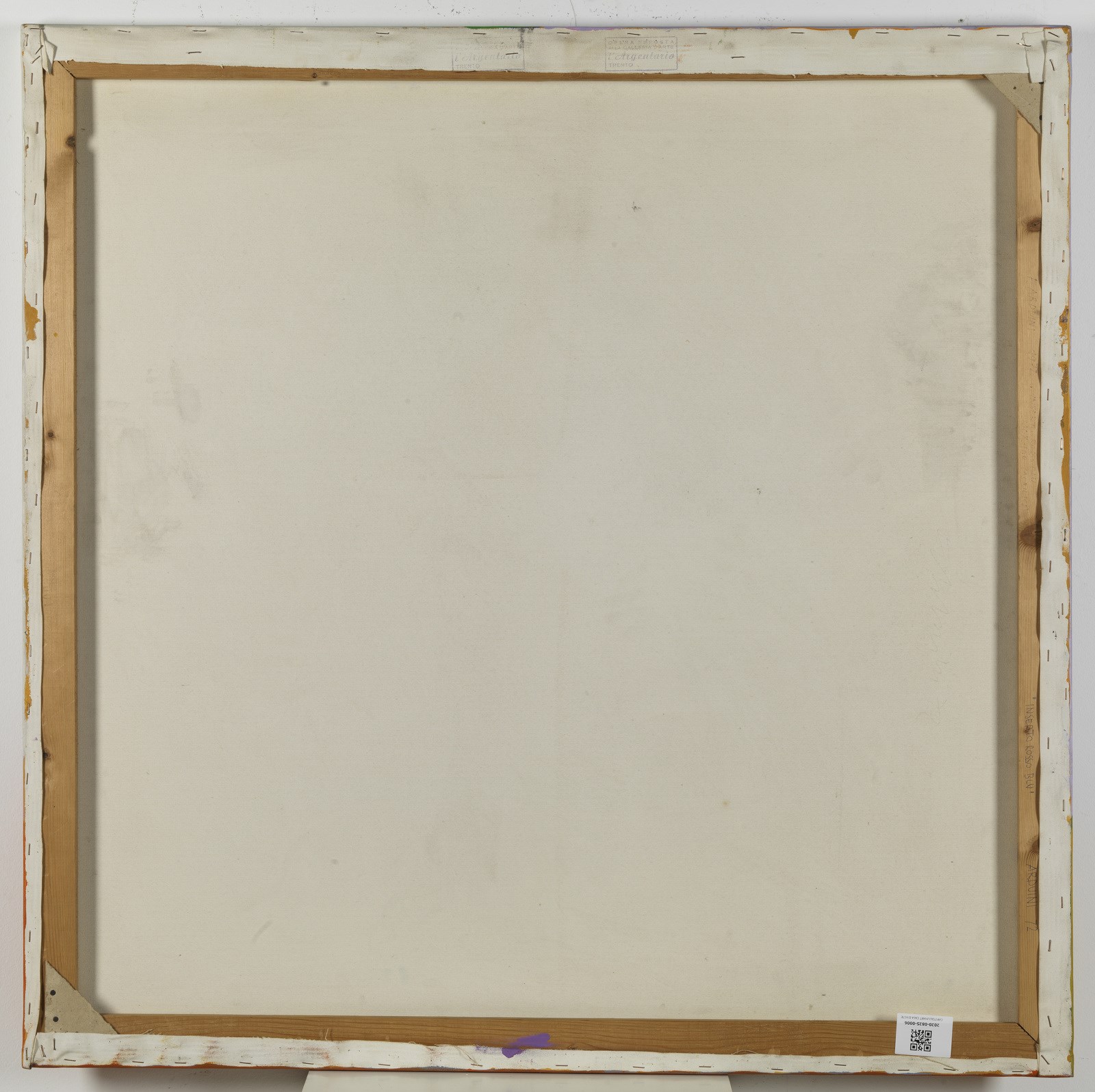 ARDUINI FRANCESCO (n. 1933) Inserto rosso e blu. 1972. Tecnica mista su tela. Cm 100,00 x 100,00. Al retro titolo, firma e anno.