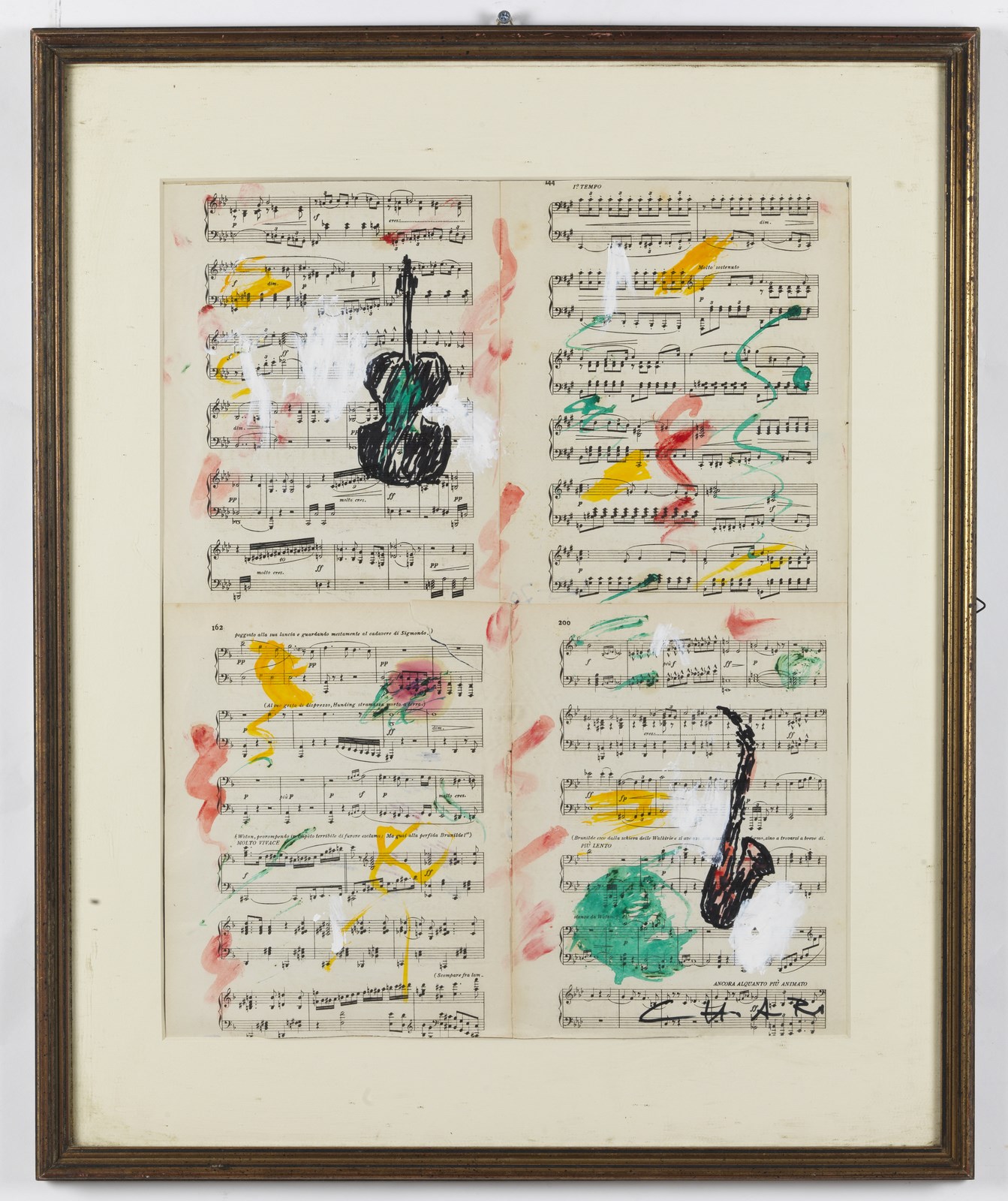 CHIARI GIUSEPPE (1926 - 2007) Senza titolo. Tecnica mista e collage su cartone. Cm 40,00 x 50,00. Firma in basso a destra. Autentica dell'artista su fotografia. Cornice presente
