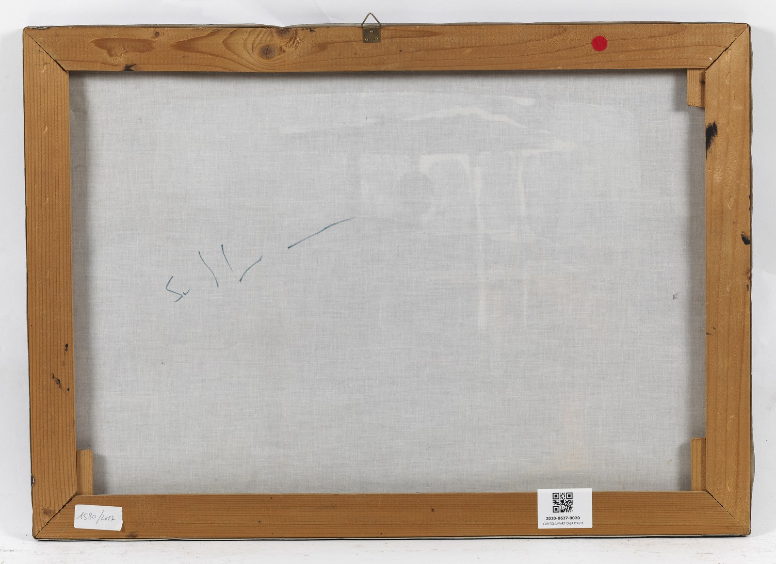 SCHIFANO MARIO (1934 - 1998) Senza titolo. Smalto su tela. Cm 70,00 x 50,00. Firma al retro. Opera archiviata presso la Fondazione Mario Schifano, Roma ( 28 Novembre 2006) come da documentazione fotografica allegata all'opera riportante il relativo numero d'inventario. Seconda metà anni '70.