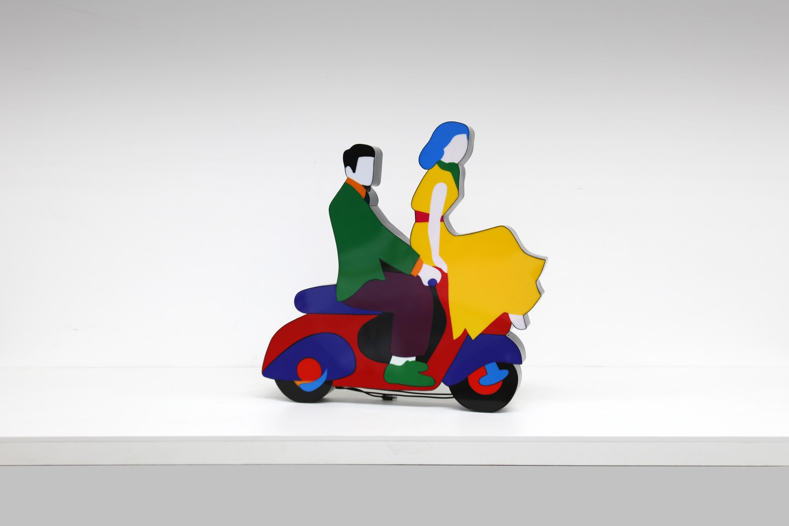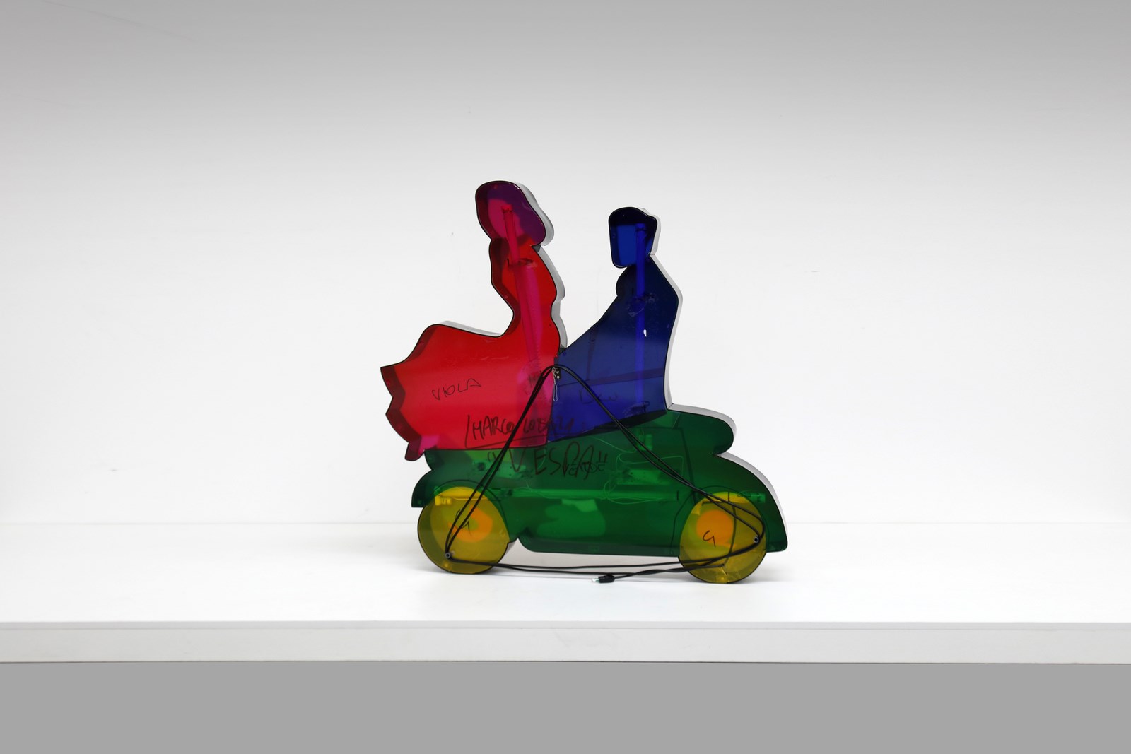 LODOLA MARCO (n. 1955) Vespa. installazione luminosa. Cm 100,00 x 112,00 x 12,00. Al retro titolo e firma. Autentica dell'artista su fotografia.